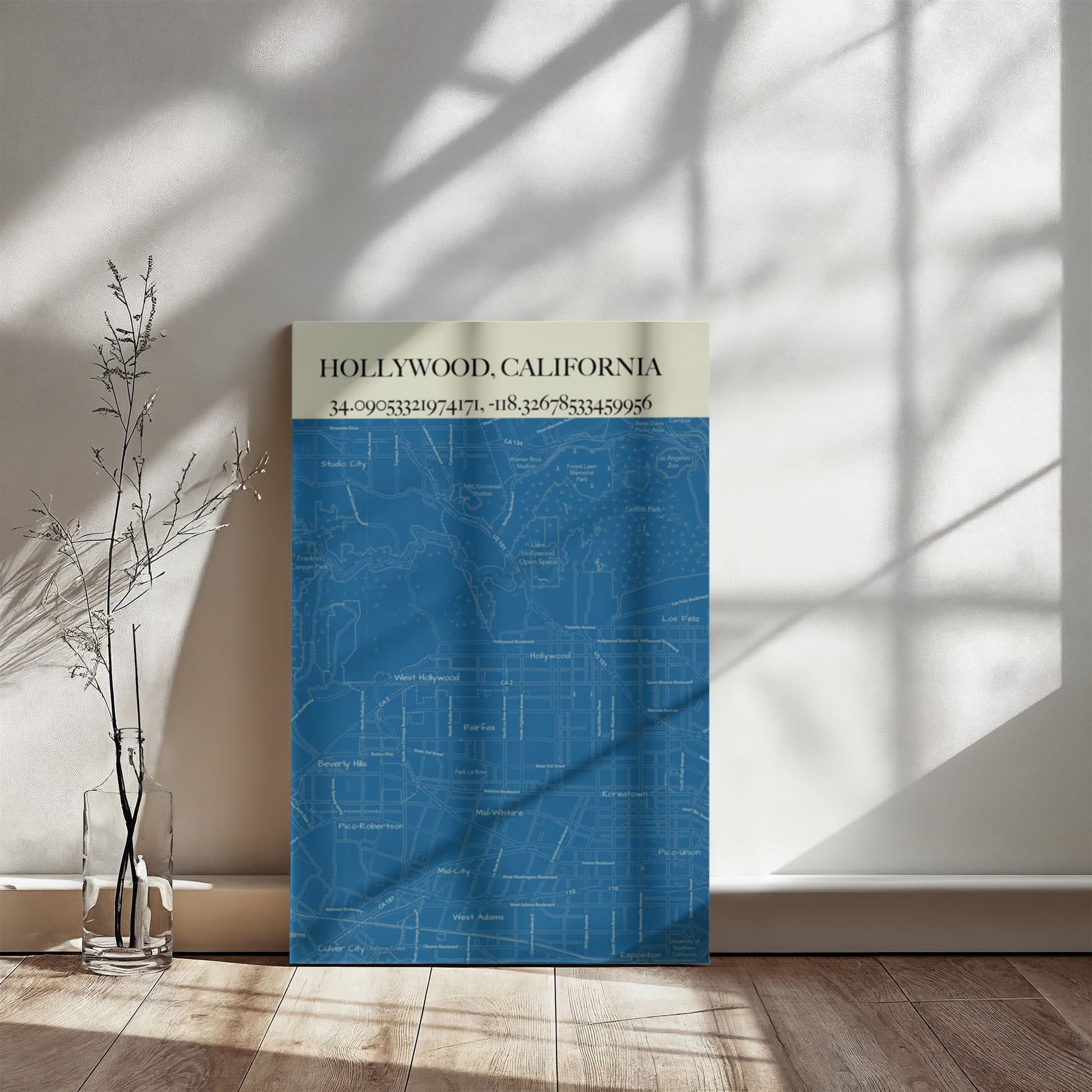 Add a touch of iconic Los Angeles charm to your space with this Hollywood Map Canvas Art. Featuring detailed streets, landmarks, and neighborhoods, this canvas celebrates the glamour and energy of Hollywood in a modern, artistic way. Perfect for film lovers, travelers, or anyone who adores the City of Stars.