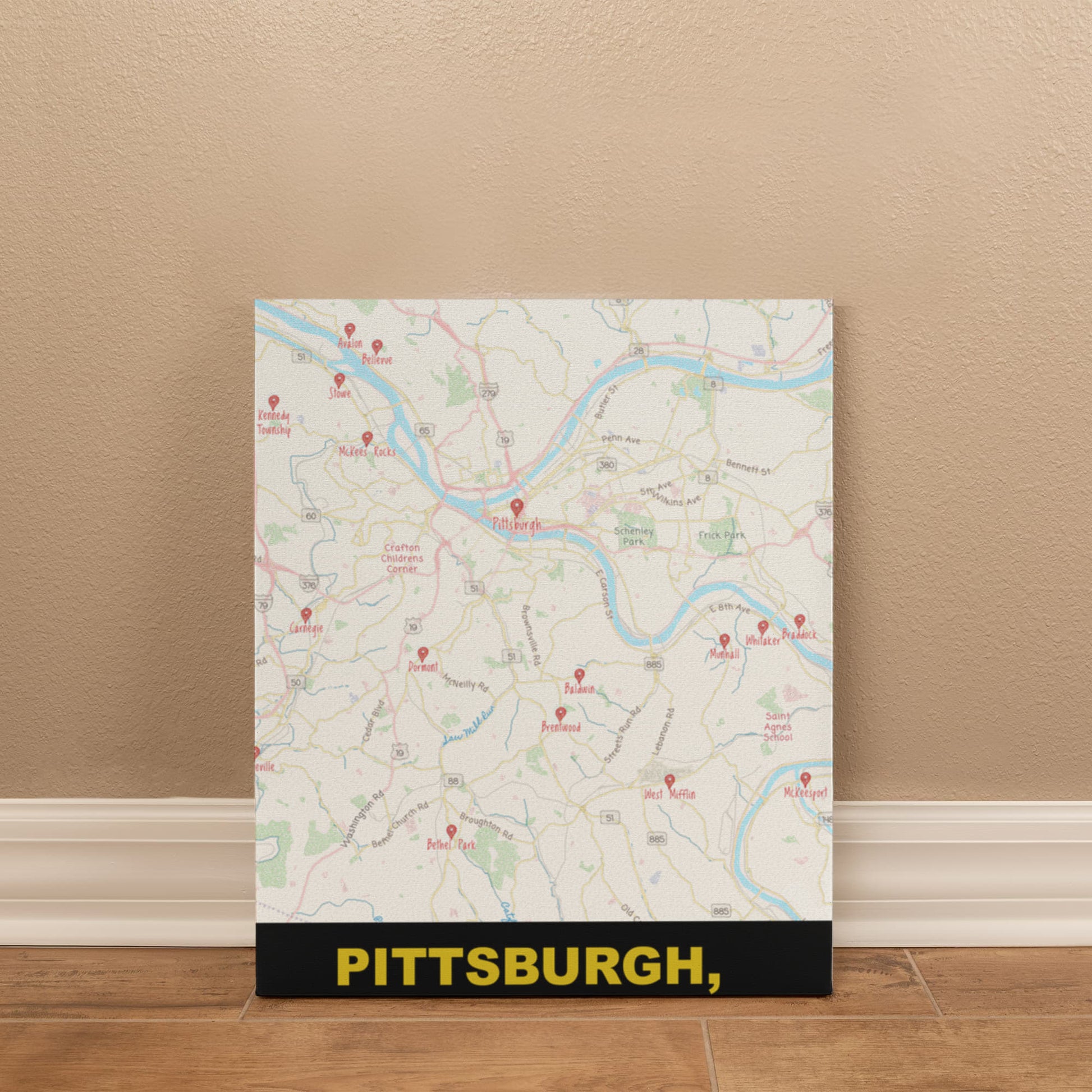 Add artistic charm to your home with this Pittsburgh, Pennsylvania Colored Pencil Map Canvas Wall Art. Featuring a hand-drawn style design, this piece beautifully highlights the city’s streets, rivers, and neighborhoods in vivid color and detail. Printed on premium canvas, it includes the city name in black & gold lettering. text for an authentic local touch. Perfect for Pittsburgh natives, sports fans, or map lovers, this unique artwork celebrates the spirit and pride of the Steel City. Ideal for living rooms, offices, or gifts that tell a story of home.