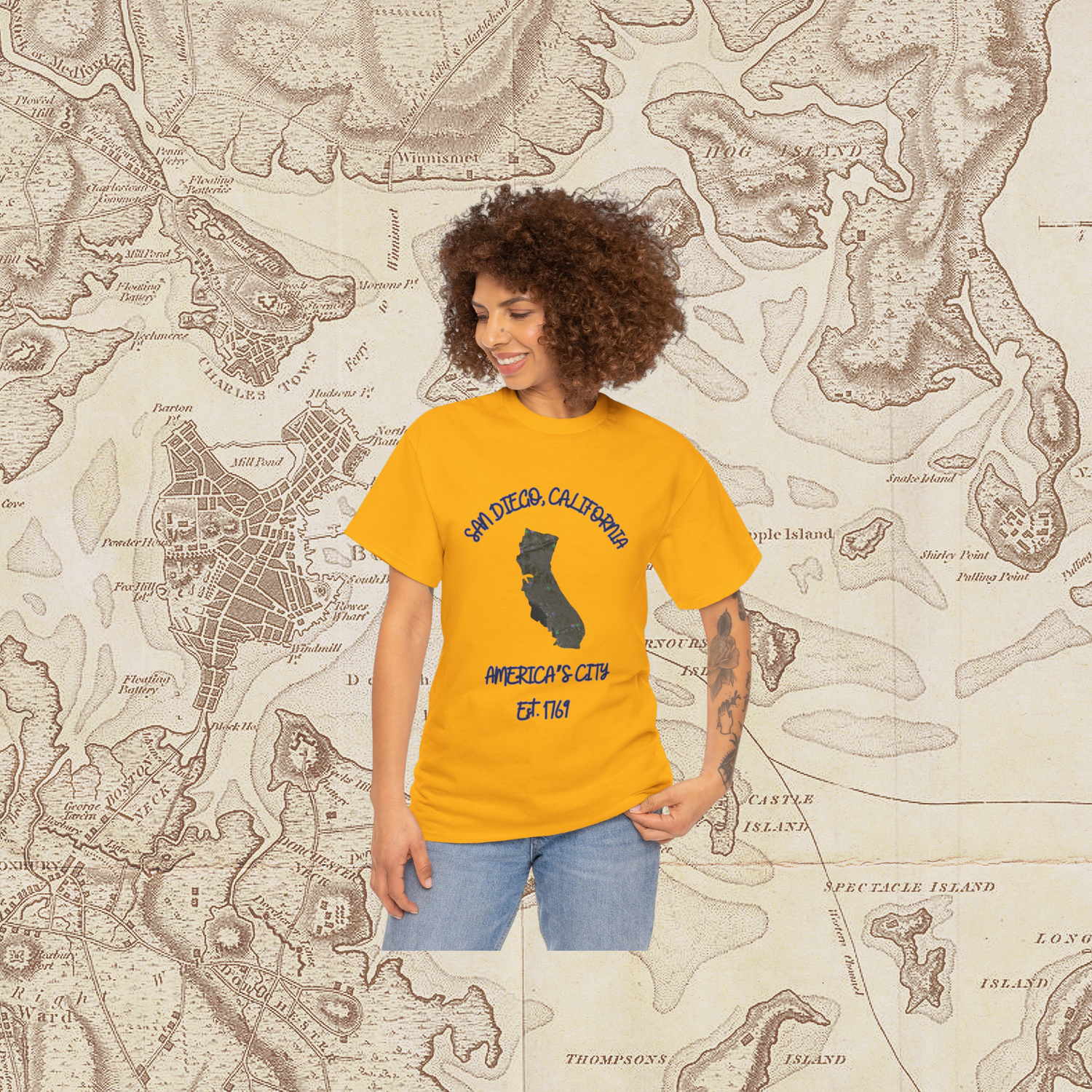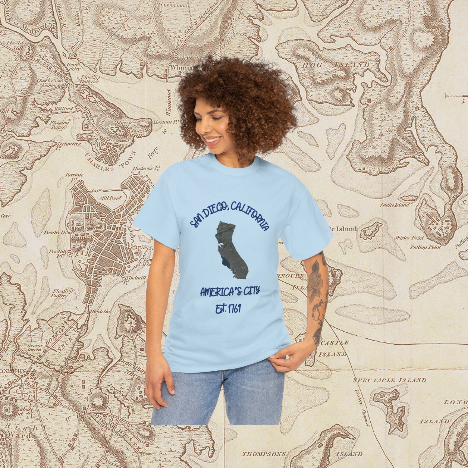 This San Diego, California map themed t-shirt gives off a laid-back and casual vibe, perfect for those who love the coastal city. It is a great addition to any wardrobe, suitable for both men and women. Ideal for tourists, locals, and anyone who appreciates unique city designs. Perfect for vacations, souvenir shopping, and casual outings.