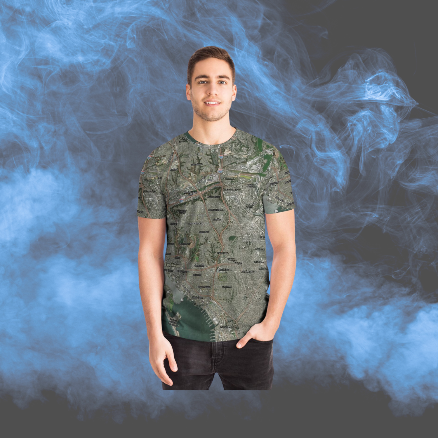 Show off your love for San Diego with this unique satellite map all over print t-shirt. Featuring a detailed aerial city view, this high-quality tee combines style with local pride. Perfect for San Diego residents, travelers, and map lovers, it makes a bold statement and a thoughtful gift. Comfortable, vibrant, and designed to stand out everywhere you go.